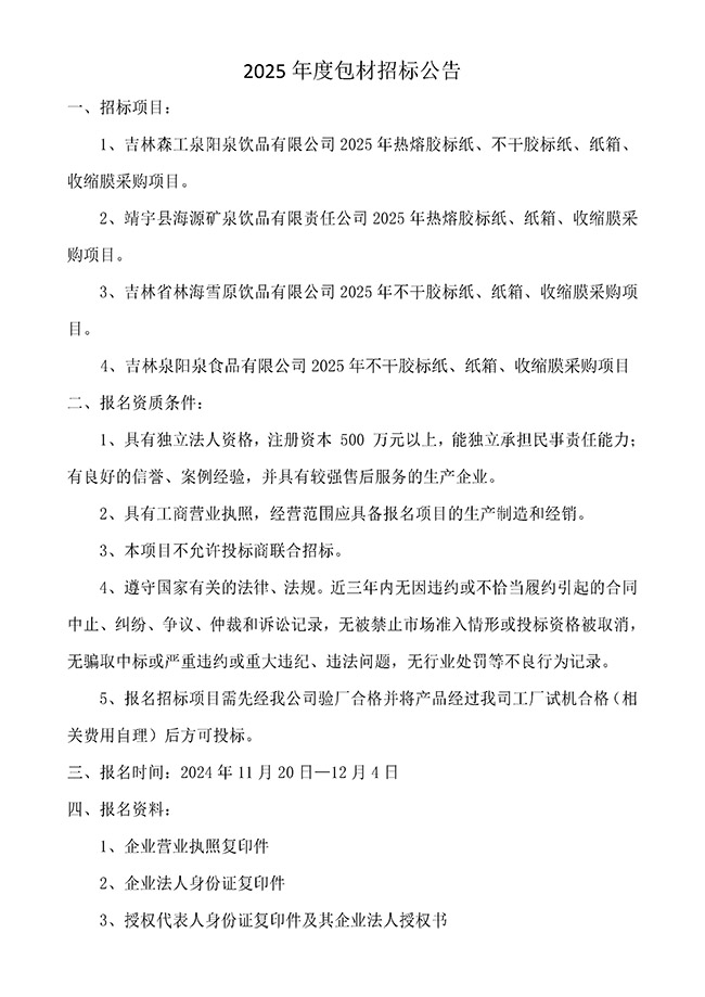 2025年度包材招標公告
