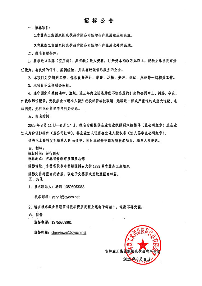 關于2025年吉林省質量獎申報材料企業外部公示的通知